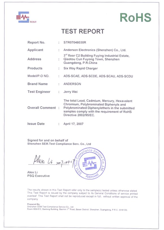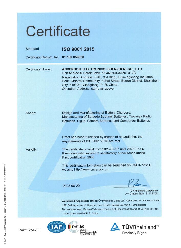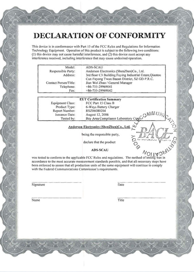 As an ISO-9001:2008 accredited company by TOV Rhineland, our highly qualified and knowledgeable committed staff provides our customers with the best in service, backup and support. Anderson can meet tight delivery schedules, offer aggressive prices and unsurpassed quality. Our products are certified by CE, FCC, UL, RoHS. As meeting every customer's satisfaction is our prime objective that every piece of products manufactured by Anderson is safe, faultless, and long-lasting.